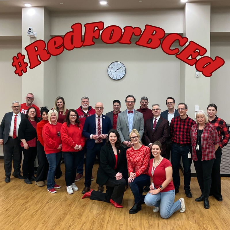 Alberta Teachers’ Association staff wore red to show support for teachers bargaining in British Columbia.